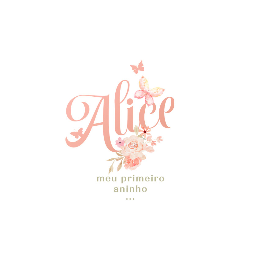 Identidade criada para o álbum de 1 aninho da Alice. A mamãe escolheu o tema de flores e borboletas para a decoração da festa. Por isso criamos um designer com as cores e elementos da festinha.